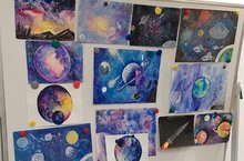 Тематическое панно "Космос глазами детей"в технике пластилинографии 12.04.2022