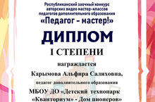 Республиканский заочный конкурс авторских видео мастер-классов педагогов дополнительного образования «Педагог - мастер!», г. Нижнекамск 27.01.2020