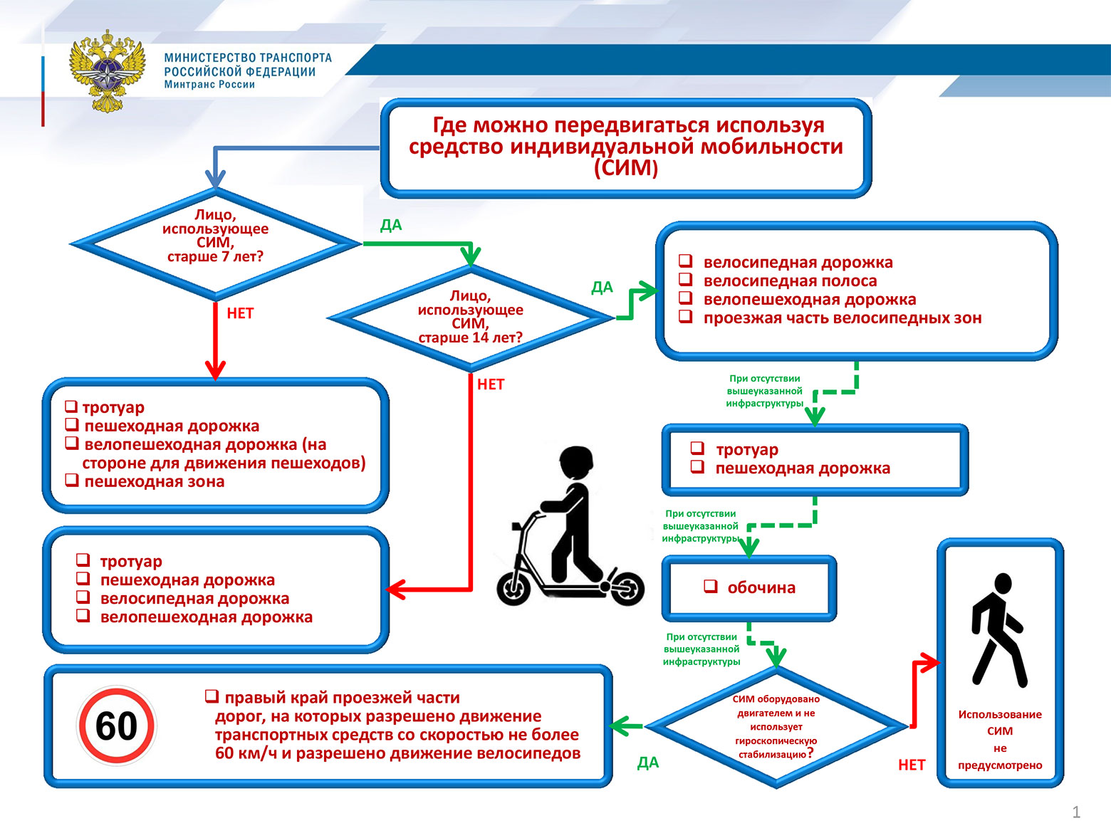Опубликовано: 25.05.2023Средство индивидуальной мобильности (СИМ) - транспортное средство, имеющее одно или несколько колес (роликов), предназначенное для индивидуального передвижения человека посредством использования двигателя (двигателей) (электросамокаты, электроскейтборды, гироскутеры, сигвеи, моноколеса и иные аналогичные средства).