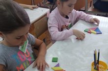 Для развития конструктивного и логического мышления, внимания, памяти - учащиеся сложили квадрат. Дидактическая игра "Танграм" под руководством ПДО отдела "ШРД - Страна Любознайка" Гизатуллиной Р.А.