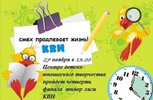 27 ноября 2016г. в 13.00 в зрительном зале МБУ ДО "Центра детско-юношеского творчетсва" пройдет четверть финала Юниор Лиги КВН.