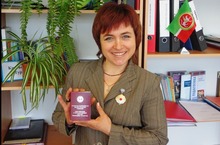 Педагогу дополнительного образования МБУ ДО «Центр детско-юношеского творчества» – руководителю Детской Думы АМР Бобровой Оксане Викторовне врученили медаль «Ана даны — Материнская слава»