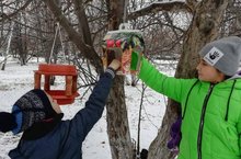 Учащиеся объединения "Познавательная экология" развесили кормушки на территории ЦДЮТ.