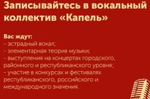 Приглашаем учащихся от 5 до 17 лет в вокальную студию "Капель". 16.11.2021