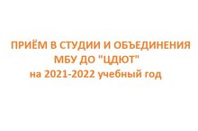 Дополнительный приём осуществляется в следующие студии МБУ ДО "ЦДЮТ": 13.09.2021