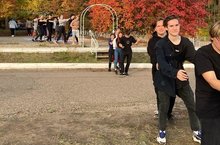 Не забыв о спорте «Лесной переполох» предусмотрел «Футбольные баталии» именно такое наименование получил четвертый этап игры, где каждый без исключения проявил себя. Молодые люди в игре, а прекрасные девушки, как болельщицы, громко поддерживающие всех без исключения. -