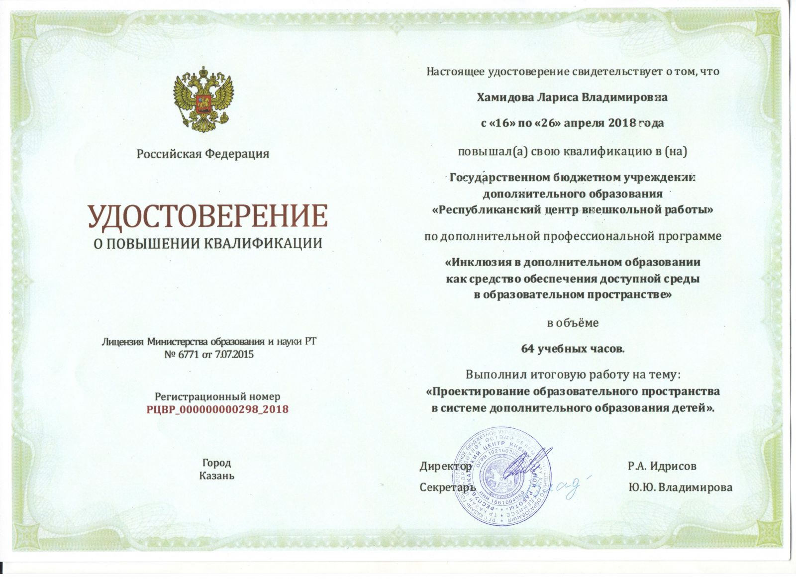 Министерство: Министерство образования и науки Республики Татарстан