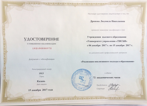 Дронова Л.Н. "Реализация инклюзивного подхода в образовании"