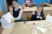 Учащиеся объединения "Начально-техническое моделирование" педагога Федоровой Венеры Генадиевны изготовливают простейшие объемные модели.