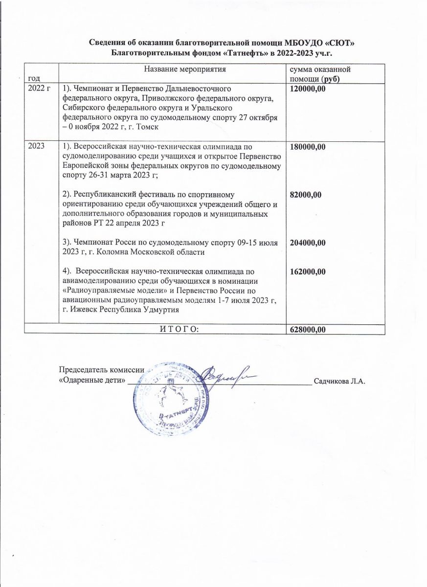 Сведения об оказании благотворительной помощи 2022-2023 уч.г.