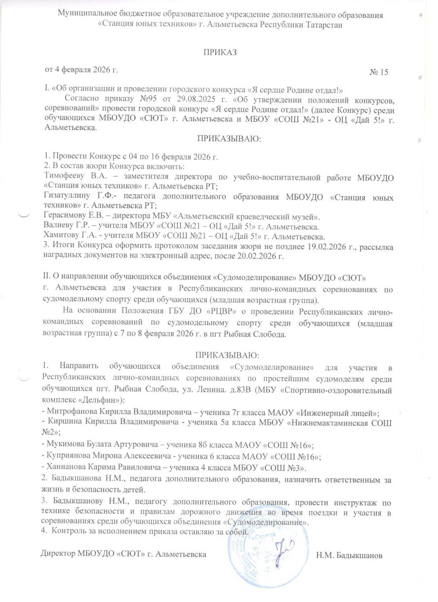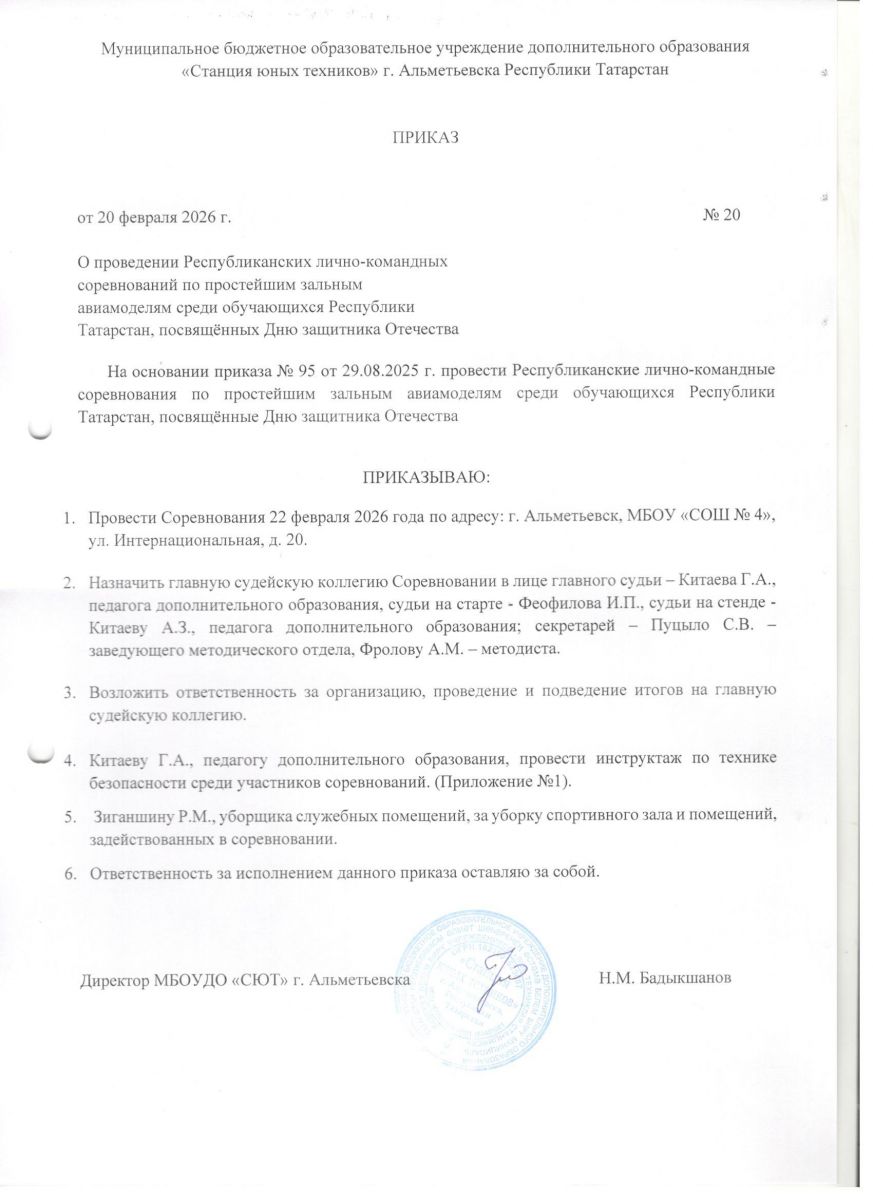 Приказ об итогах республиканских лично-командных соревнований по простейшим зальным авиамоделям