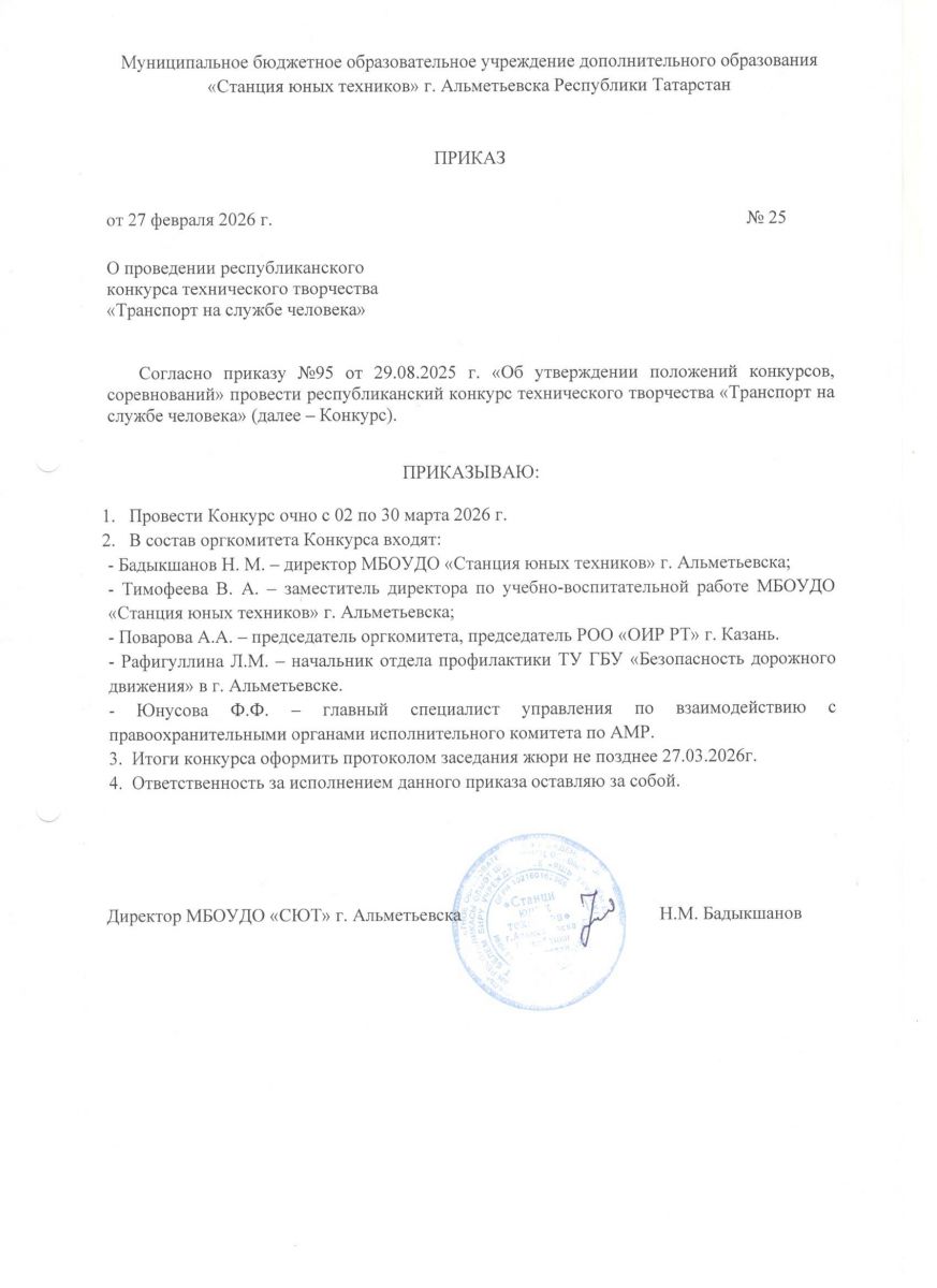 Приказ о проведении Республиканского конкурса "Транспорт на службе человека"