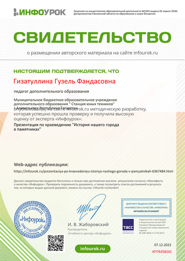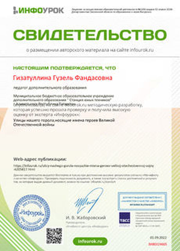 Муниципальное бюджетное образовательное учреждение дополнительного образования «Станция юных техников» г. Альметьевска Республики Татарстан /Татарстан Республикасы Әлмәт шәһәренең өстәмә белем бирүче муниципаль бюджет белем бирү учреждениесе «Яшь техниклар станциясе»/
