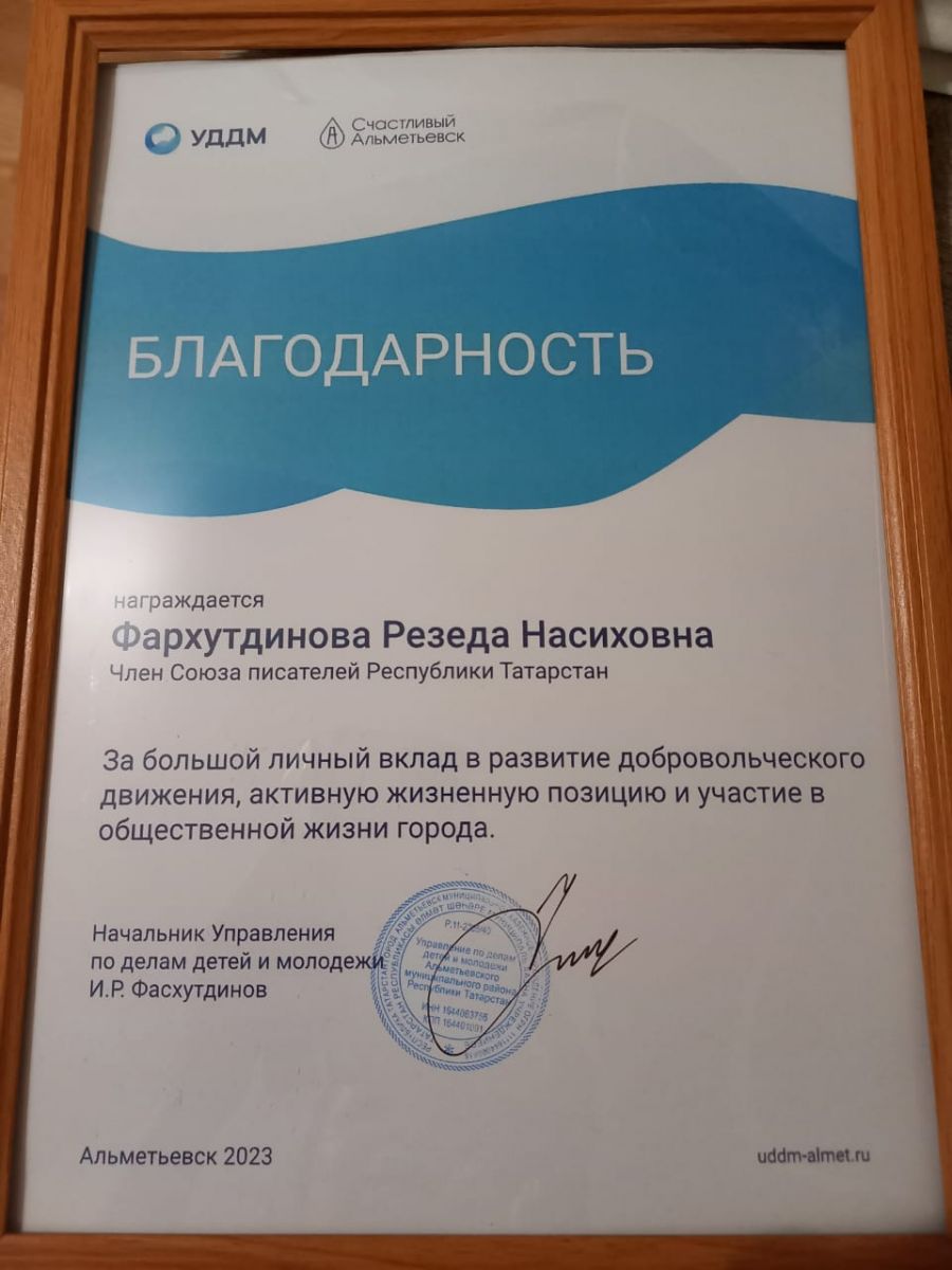 Опубликовано: 06.12.2023Коллектив Станции юных техников поздравляет Резеду Насиховну с наградой за большой личный вклад в развитие добровольческого движения, активную жизненную позицию и участие в общественной жизни города. Желаем дальнейших успехов в работе.