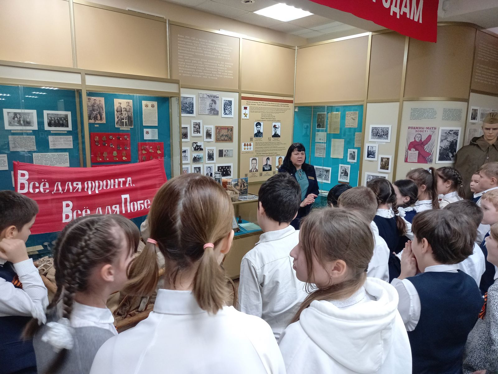 Педагог рассказала о юных антифашистах. Педагог совместно с обучающимися говорили о пионерах- героях, о блокадном Ленинграде, обучающееся Ямалетдинов Айзат познакомил с фрагментами своего проекта « Непокоренный Ленинград», а Чумаков Егор -с фрагментами проекта «Наши родные в Великой Отечественной войны» - рассказал своем прадеде Гусеве Федоре Леонтьевиче. На мероприятии звучали стихи о героях, о блокадном Ленинграде в исполнении краеведов, показаны были видеофрагмент фильма» Непокоренные» позвучали песни( видеофрагменты).Работники музея привели мини- экскурсию « Наши земляки в годы войны». Мероприятие сопровождалось презентацией педагога.