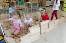 Именно под таким девизом сегодня в средних группах прошла грандиозная работа по постройке дома! В ход пошло всё: конструкторы, кубики, бабашки. А автомобили