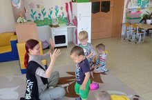 Маша вместе с малышами похлопала, потопала, головкой покачала и весело потанцевала