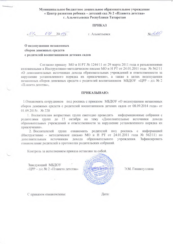 http://almetedu.ru/Antikorupcia/prikaz_1276.pdf - ссылка на Приказ Управления образования "О недопущении незаконных сборов денежных средств"