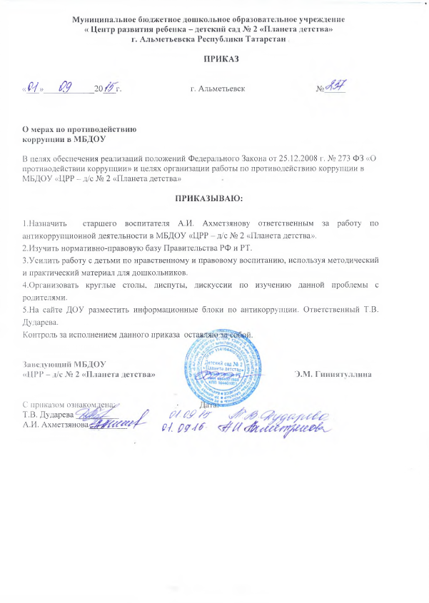 Приказ "О мерах по противодействию коррупции в МБДОУ"