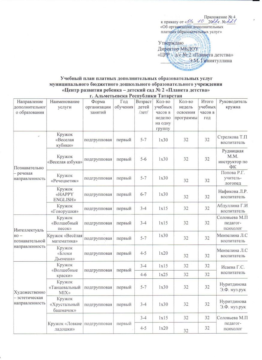 Учебный план дополнительной общеобразовательной общеразвивающей программы 2022 г.