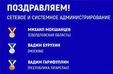 Поздравляем БРОНЗОВОГО ПОБЕДИТЕЛЯ финала VIII Национального чемпионата «Молодые профессионалы» (WorldSkills Russia) в компетенции «Сетевое и системное администрирование» выпускника техникума группы ИС-161б Гарифуллина Вадима Маратовича и ведущего инженера Иванова Германа Борисовича! Вадим успешно выступил в своей компетенции и достойно занял третье место из 46 участников, уступив только участникам из Екатеринбурга и Москвы!