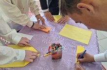 И сейчас, наши девятиклассники подарят символ акции – самолетик, на котором написаны напутственные слова на первый их в жизни учебный год.
