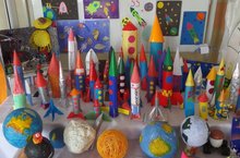 Учащиеся 1-4 классов подготовили проекты и организовали выставку, посвященную «Дню космонавтики».