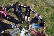 Утро понедельника в нашем лагере начинается с построения, поднятия флага, инструктажа и конечно же зарядки.