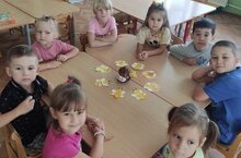 Август символизирует начало сбора мёда. Дети узнали как живут пчелы, какую роль они играют в природе, как собирается мёд. Также выполнили аппликацию "Соты для пчёл ".