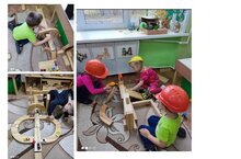 Вначале средней группы конструктивные навыки по работе с бабашками были незначительными, у них не было опыта работы с этим конструктором, но был интерес. Ребята строили башенки, заборчики, не используя абрисы. К концу года постройки заметно усложнились.