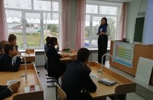 Газымова Алсу Рифнуровна, заведующая отделом профилактики Альметьевского филиала Республиканского Центра СПИД для учащихся школы прочитала лекцию на тему: Профилактика ВИЧ-инфекции и формирование безопасного поведения "