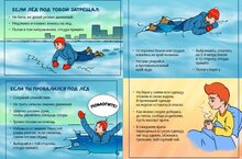 - на лед надо наползать, стараясь не ломать кромку. Широко раскидывай руки. Сначала лед может ломаться. Пусть это не приводит тебя в отчаяние. Ты знаешь, что это бывает, поэтому не сдавайся. Надо наползать на кромку снова и снова. Очень важно не погрузиться в воду с головой!