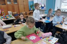 Учащиеся начальной школы подготовили поздравительные открытки для своих мам
