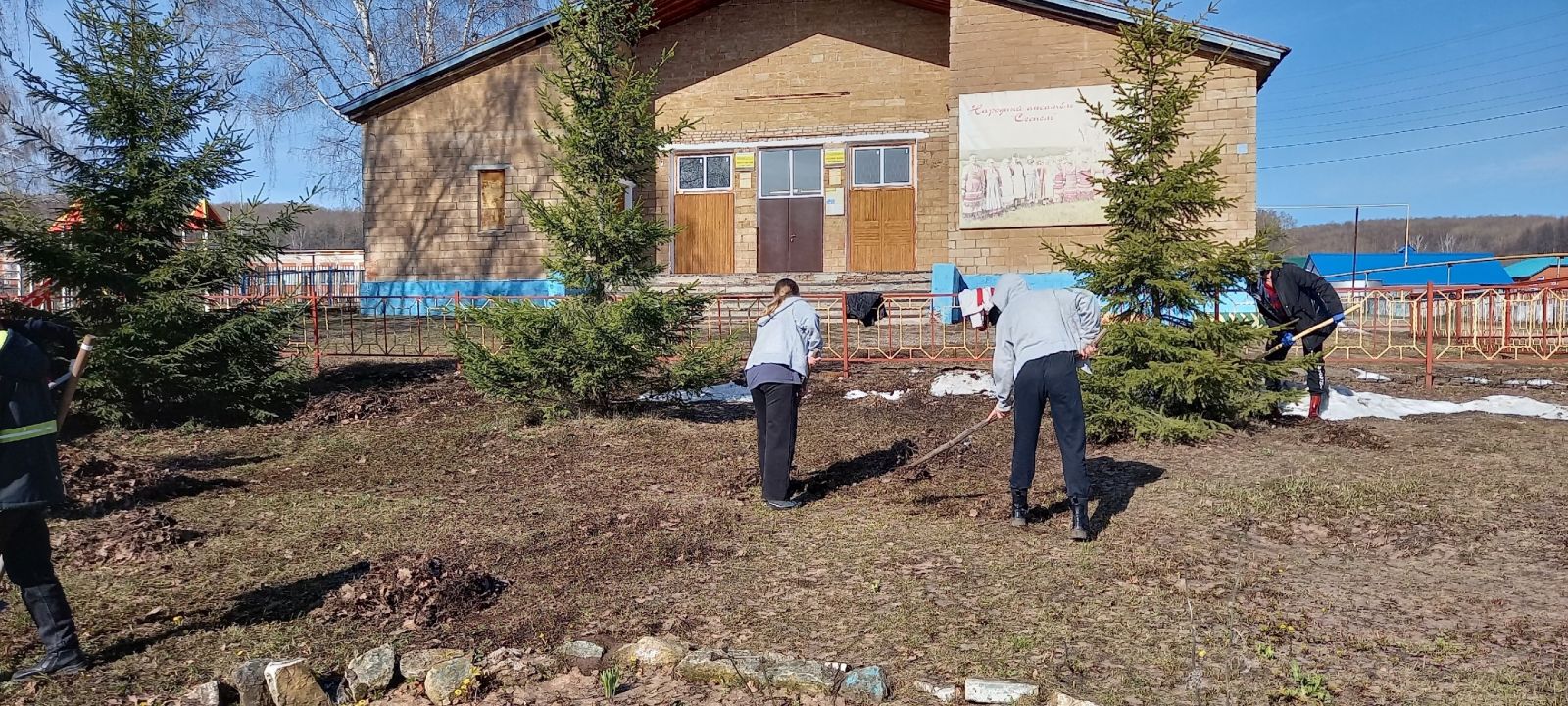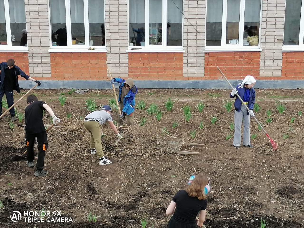 25 апреля учащиеся 6 и 8 классов с учителем технологии Ухандеевой А.М. привели в порядок клумбу и теплицу