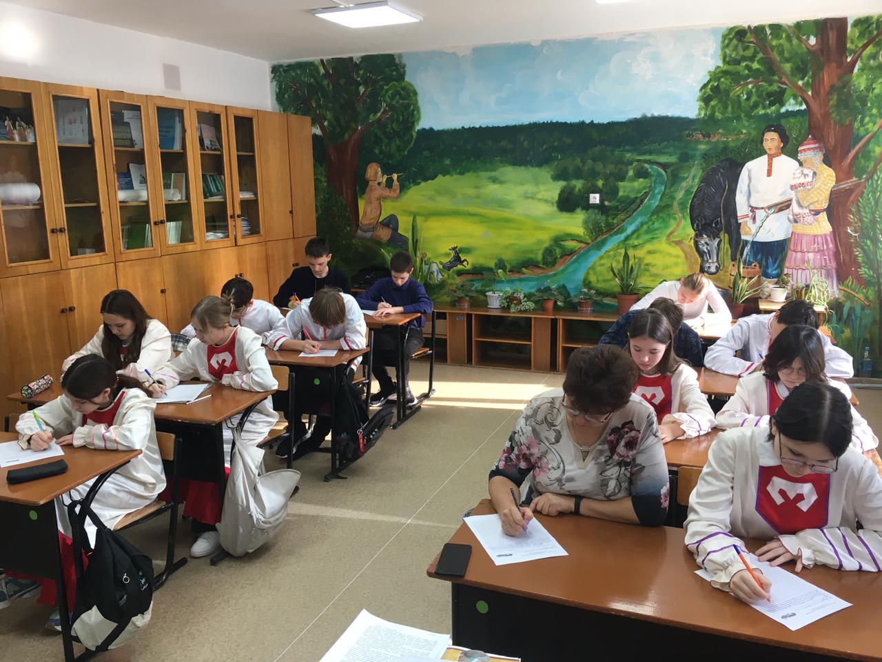 27 октября ученики и учителя школы приняли участие в Диктанте на родных языках народов, проживающих в Республике Татарстан. Писали диктант на чувашском языке.