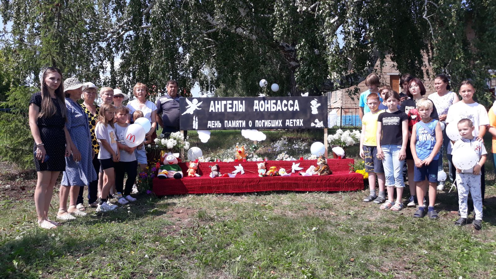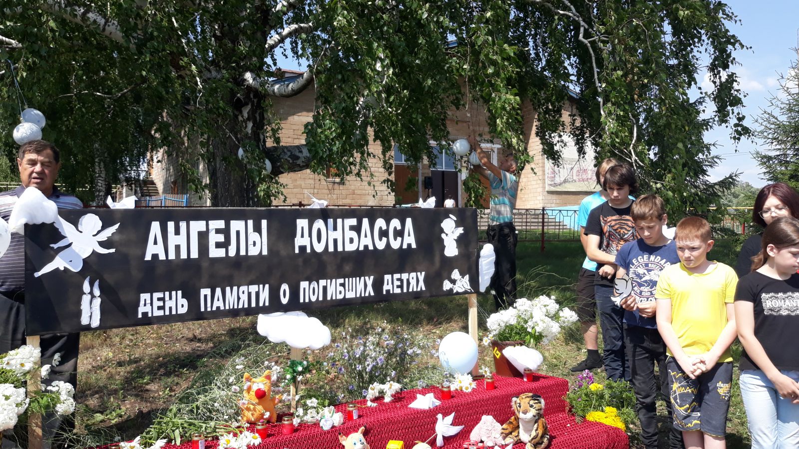 Сегодня, 27 июля, совместно с сельским Домом культуры проведено мероприятие, посвященное Дню памяти детей-жертв войны в Донбассе. Ученики приносили игрушки, жители зажигали свечи, а в заключении мероприятия запустили белые шары