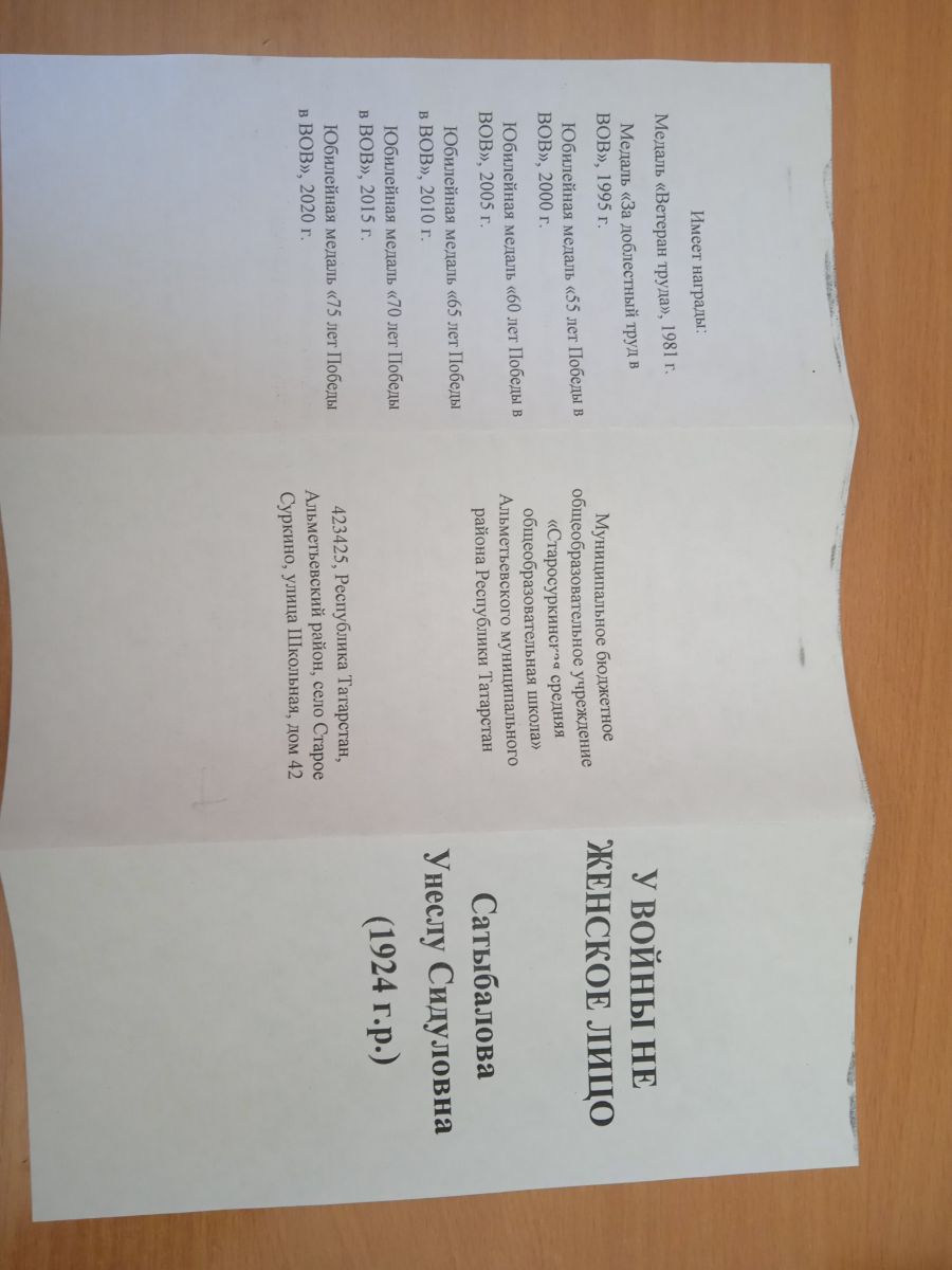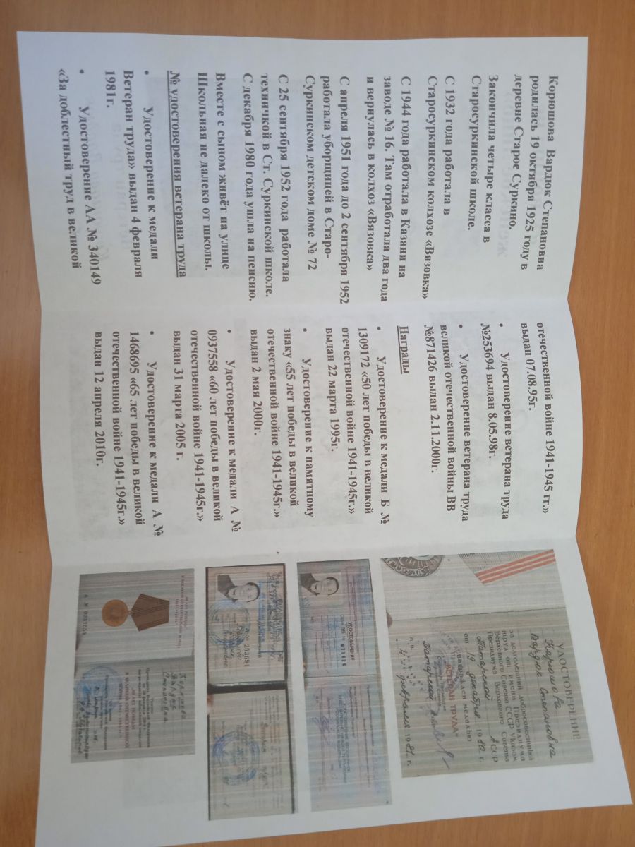 В рамках подготовки и проведения мероприятий к 78-й годовщине Победы в ВОВ с 1 по 13 марта в школе была организована выставка буклетов "У войны не женское лицо", рассказывающая о труженицах тыла села Старое Суркино