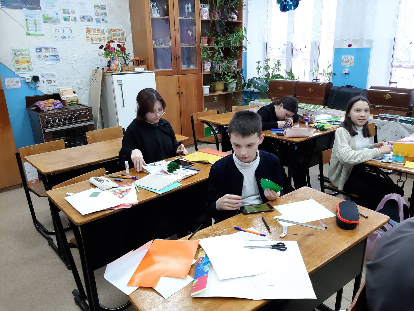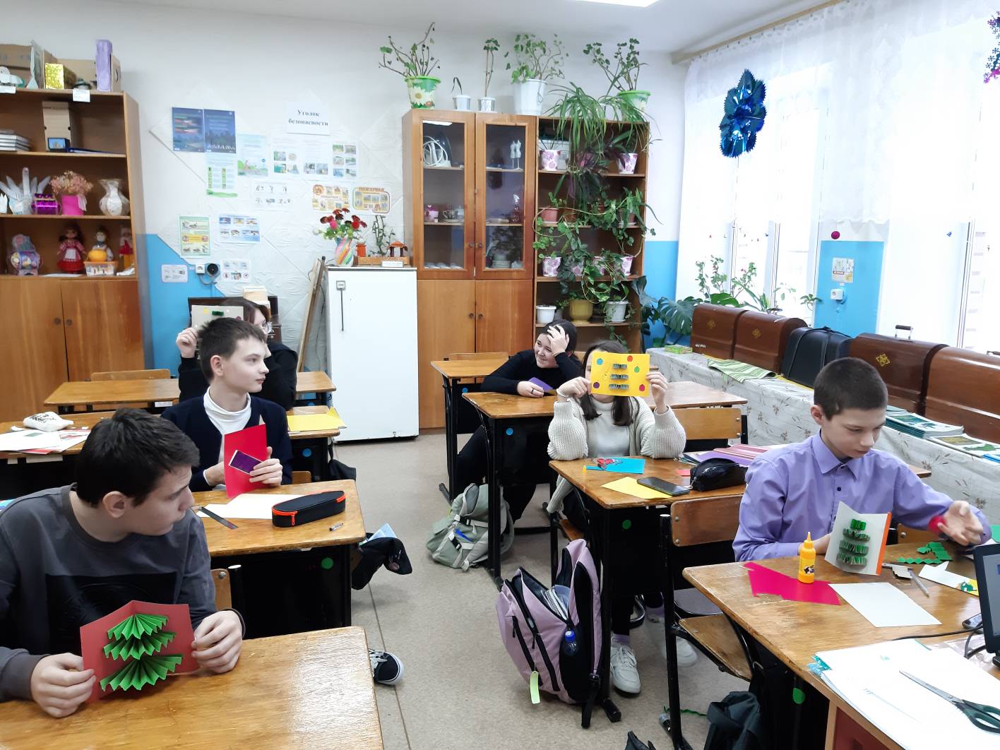 2 января в 7 классе был проведен мастер-класс "Новогодняя открытка"