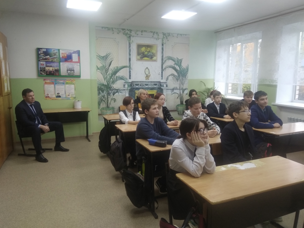 11 октября 2022 г. в школе был проведен Единый урок по правовому просвещению "Мы в ответе за свои поступки". На урок был приглашен депутат Зимин Андрей Александрович