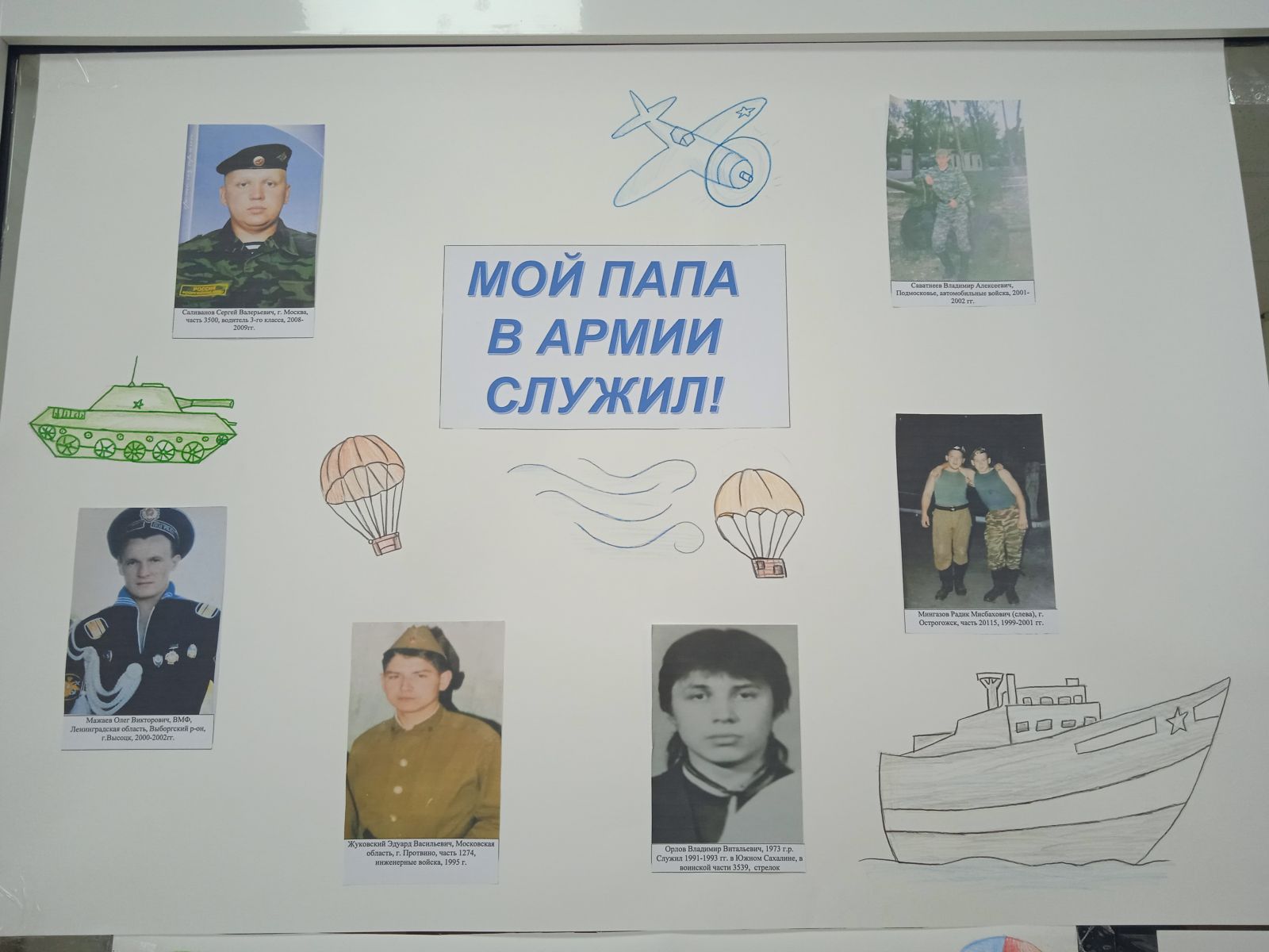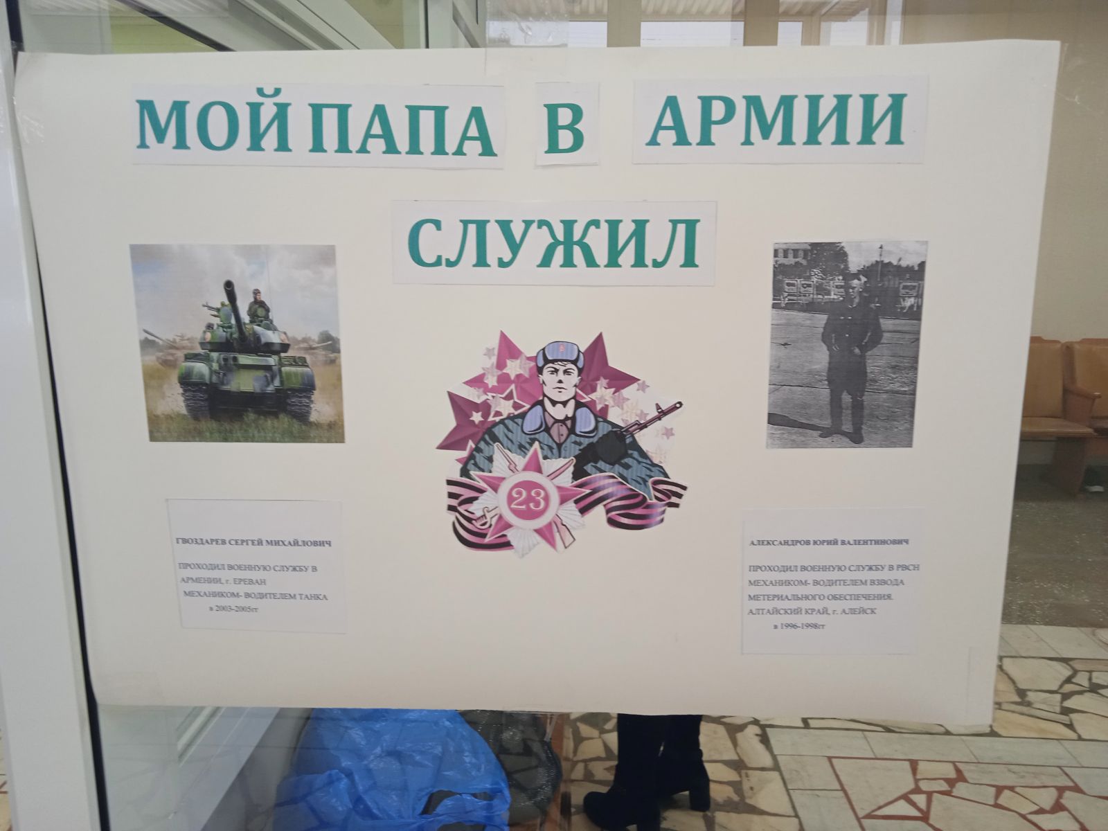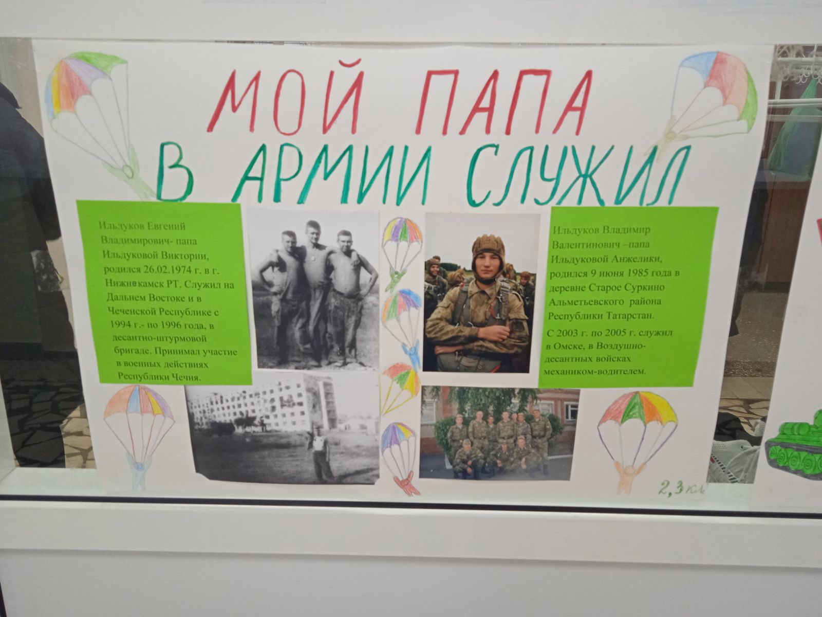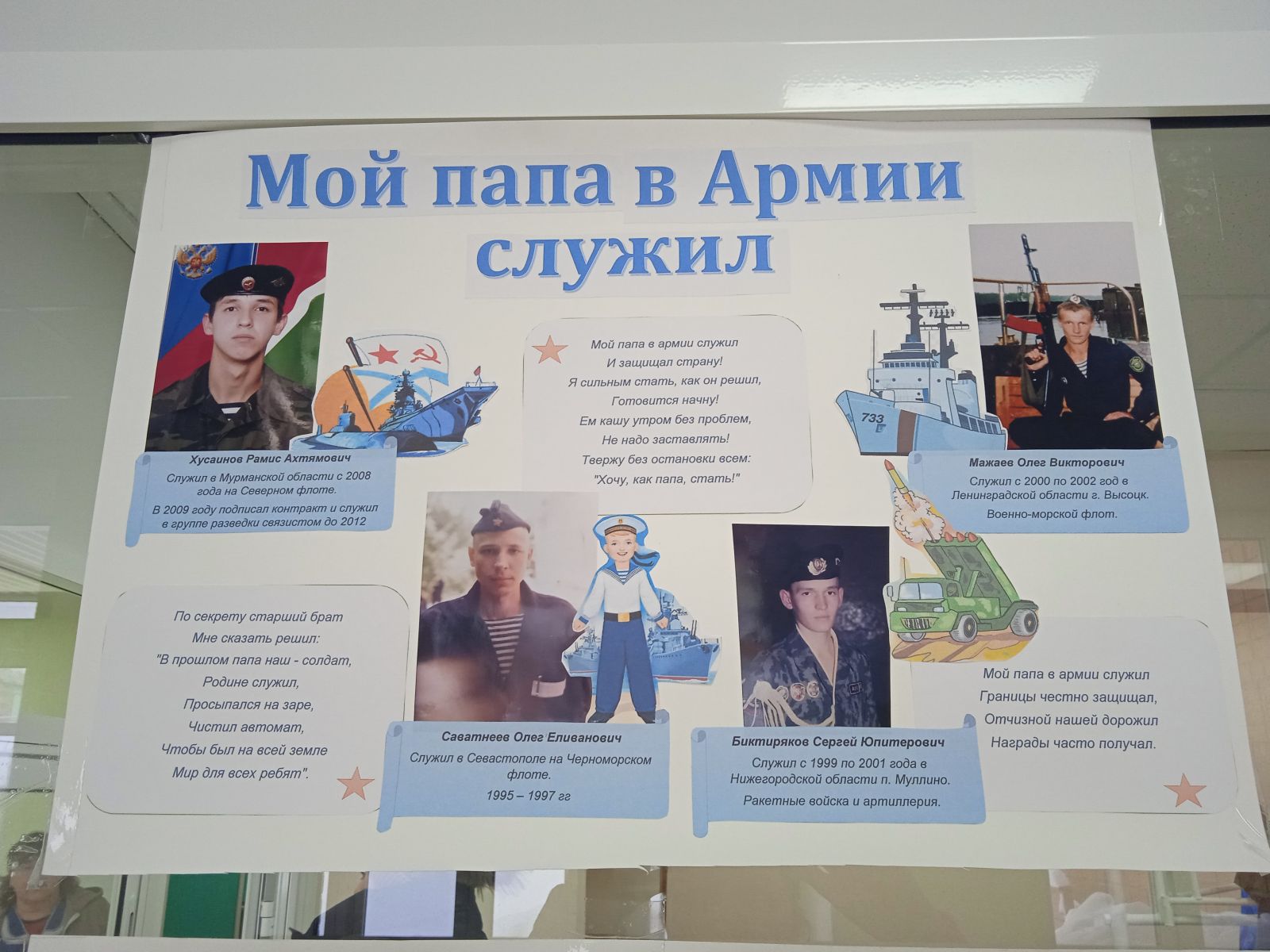 21 февраля 2022 г. в рамках гражданско-патриотического месячника и плана проведения мероприятий, посвященных 77-ой годовщине Победы в Великой Отечественной войне в школе была организована выставка плакатов "Мой папа в армии служил". В выставке приняли участие все классы.