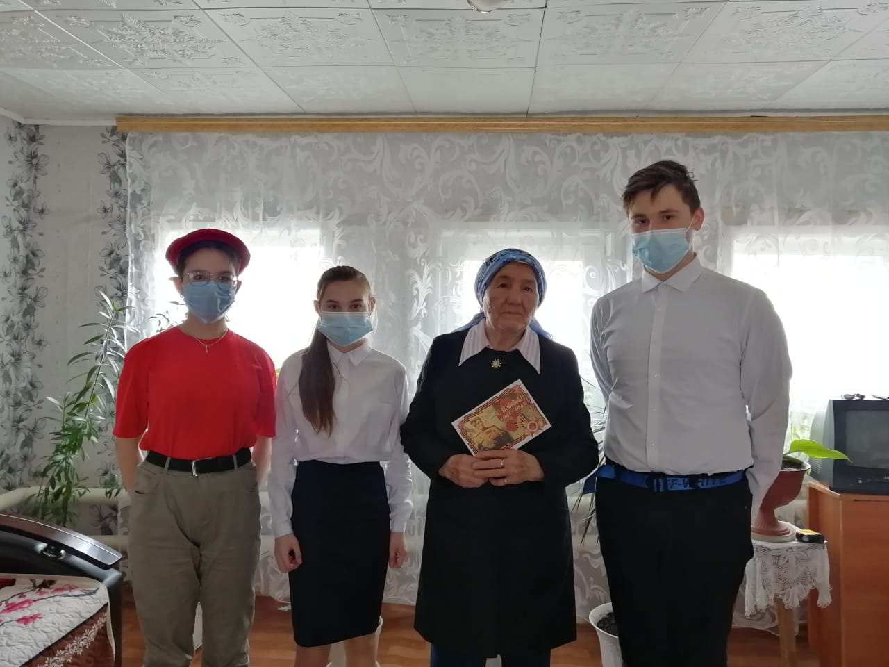 В рамках акции "У войны не женское лицо..." юнармейцы 9 класса и их одноклассники поздравили Паймендееву Нину Ивановну с 76-ой годовщиной Победы. Нина Ивановна родилась в 1937 году, росла в тяжёлые военные и послевоенные годы. Она рассказала о том, как люди жили в военное время, что ей больше всего запомнилось. «Благодарим Вас, Нина Ивановна, что уделили нам своё время!»