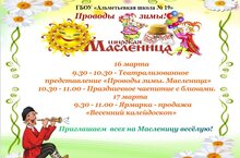 Хороводом, конкурсами, состязаниями, праздничными угощениями встретили Масленицу в нашей школе. Наш коллектив организовал праздничную программу «Проводы зимы. Масленица». Пришли на праздник и стар, и мал. Гости праздника дружно закликали весну, водили хороводы, отгадывали загадки, пели частушки. В завершение праздника все присутствующие угощались горячими, ароматными блинами и чаем со сладостями.