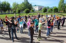 Члены отряда ЮИД перед летними каникулами в школе организовали и провели флешмоб "Знаем и соблюдаем ПДД"