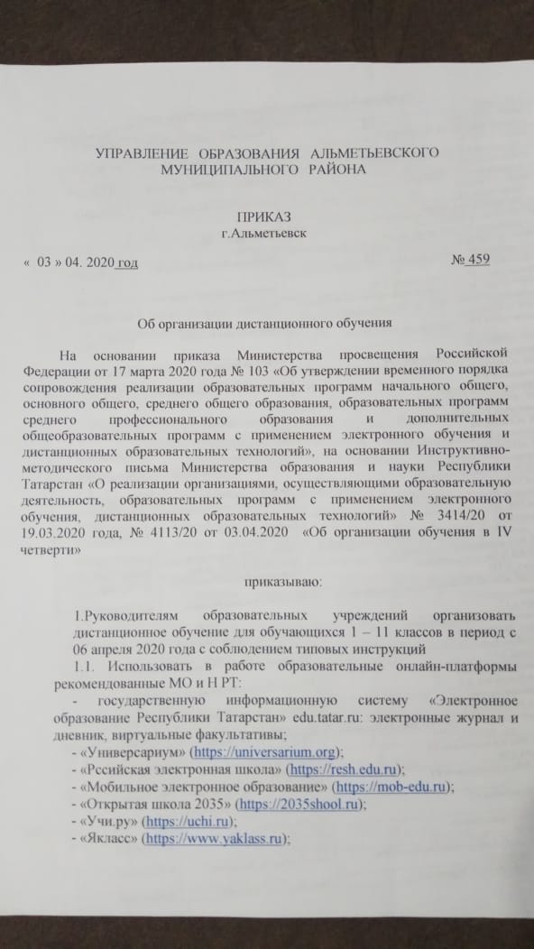 МО и Н РТ "Об организации обучения в IV четверти"