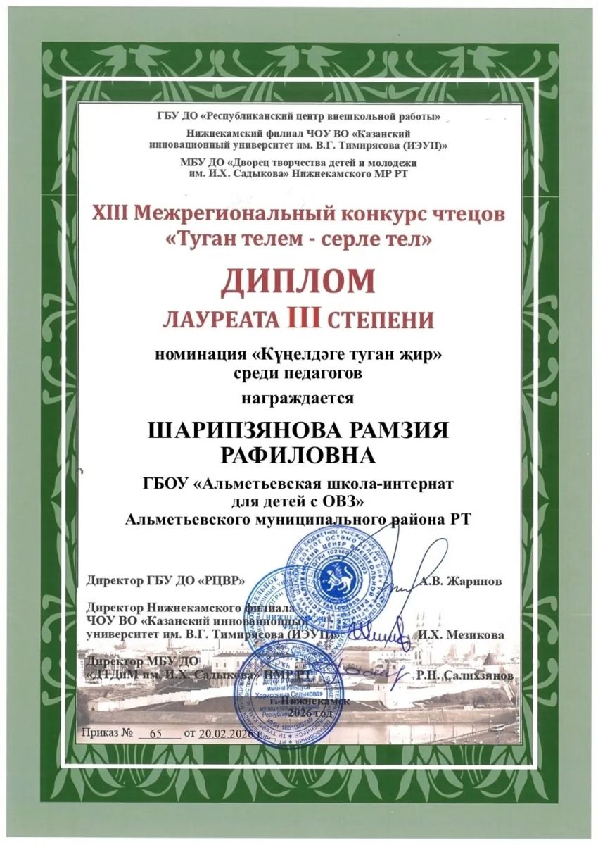 • Государственное бюджетное общеобразовательное учреждение "Альметьевская школа-интернат для детей с ограниченными возможностями здоровья"/ "Сәламәтлек мөмкинлекләре чикләнгән балалар өчен Әлмәт интернат-мәктәбе" дәүләт бюджет гомуми белем учреждениесе