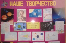 В школе прошла выставка рисунков "Вселенная глазами детей", посвященная Дню космонавтики.