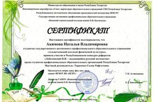С 21 ноября по 21 декабря 2016 года в рамках Республиканского профессионального конкурса преподавателей математики, посвященного к 224-летию со дня рождения Н.И. Лобачевского, состоялся Республиканский конкурс рефератов среди студентов профессиональных образовательных организаций Республики Татарстан. Акимова Наталья, студентка 3 курса, 31 группы приняла участие, написав реферат на тему «Лобачевский Николай Иванович – выдающийся русский математик, создатель неевклидовой геометрии, за что и получила сертификат участника. Поздравляем! Желаем здоровья и успехов!