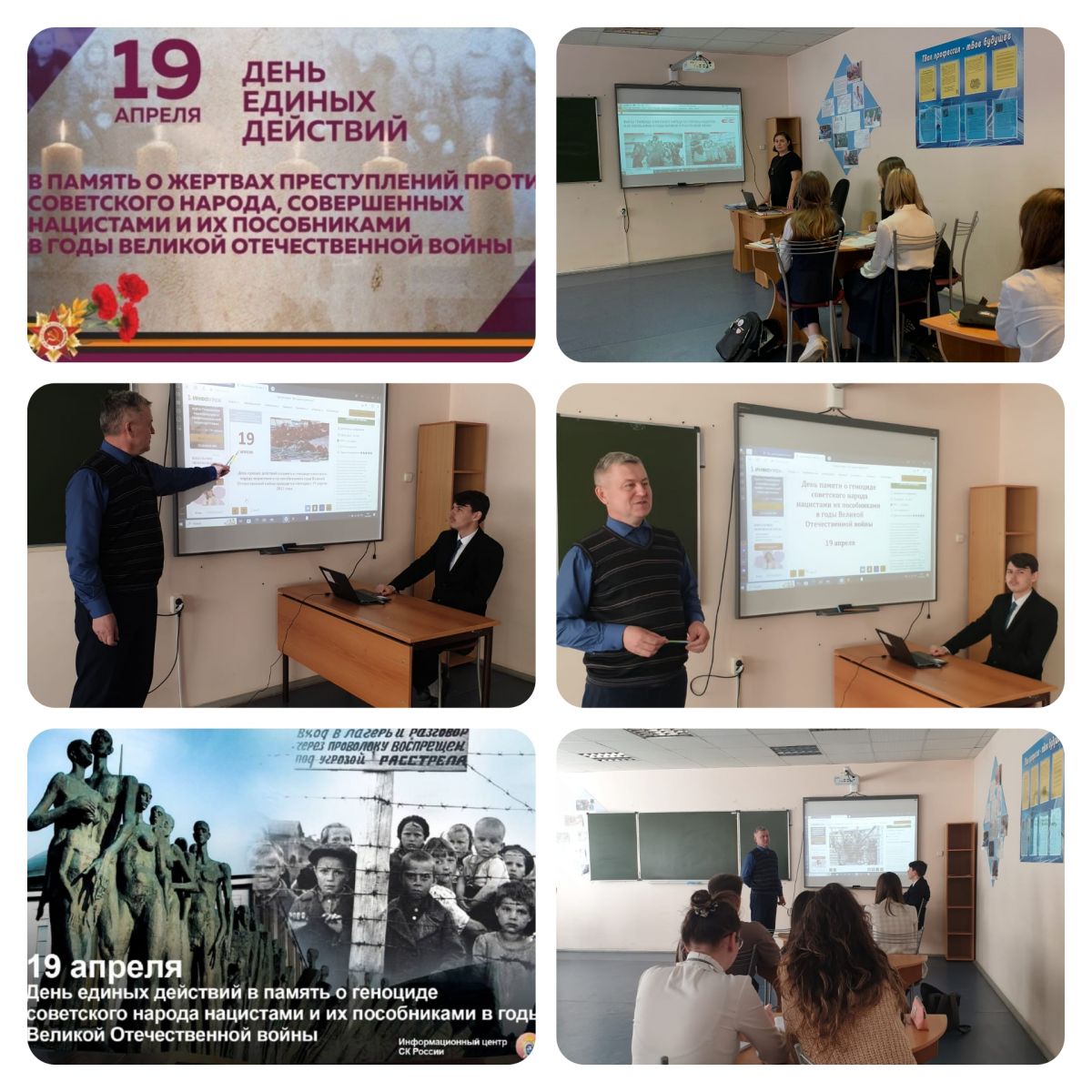 19 апреля День памяти о геноциде советского народа нацистами и их пособниками в годы Великой Отечественной войны Помнить каждому! Знать каждому!! Нельзя забыть!!! Нельзя молчать!!!! В МБОУ «СОШ 1» в старших классах прошли классные часы, тема которых «ДЕНЬ ПАМЯТИ О ГЕНОЦИДЕ СОВЕТСКОГО НАРОДА НАЦИСТАМИ И ИХ ПОСОБНИКАМИ». День единых действий в память о геноциде советского народа нацистами и их пособниками в годы Великой Отечественной войны проводится ежегодно с 19 апреля 2021 года. Целью проведения Дня единых действий является сохранение исторической правды о преступлениях нацистов и их пособников в отношении мирных советских граждан в годы Великой Отечественной войны на оккупированной территории. Необходимо показать через призму исторической памяти, что действия Красной Армии и единение советского народа в достижении Победы спасли наше государство и его граждан от полного уничтожения.