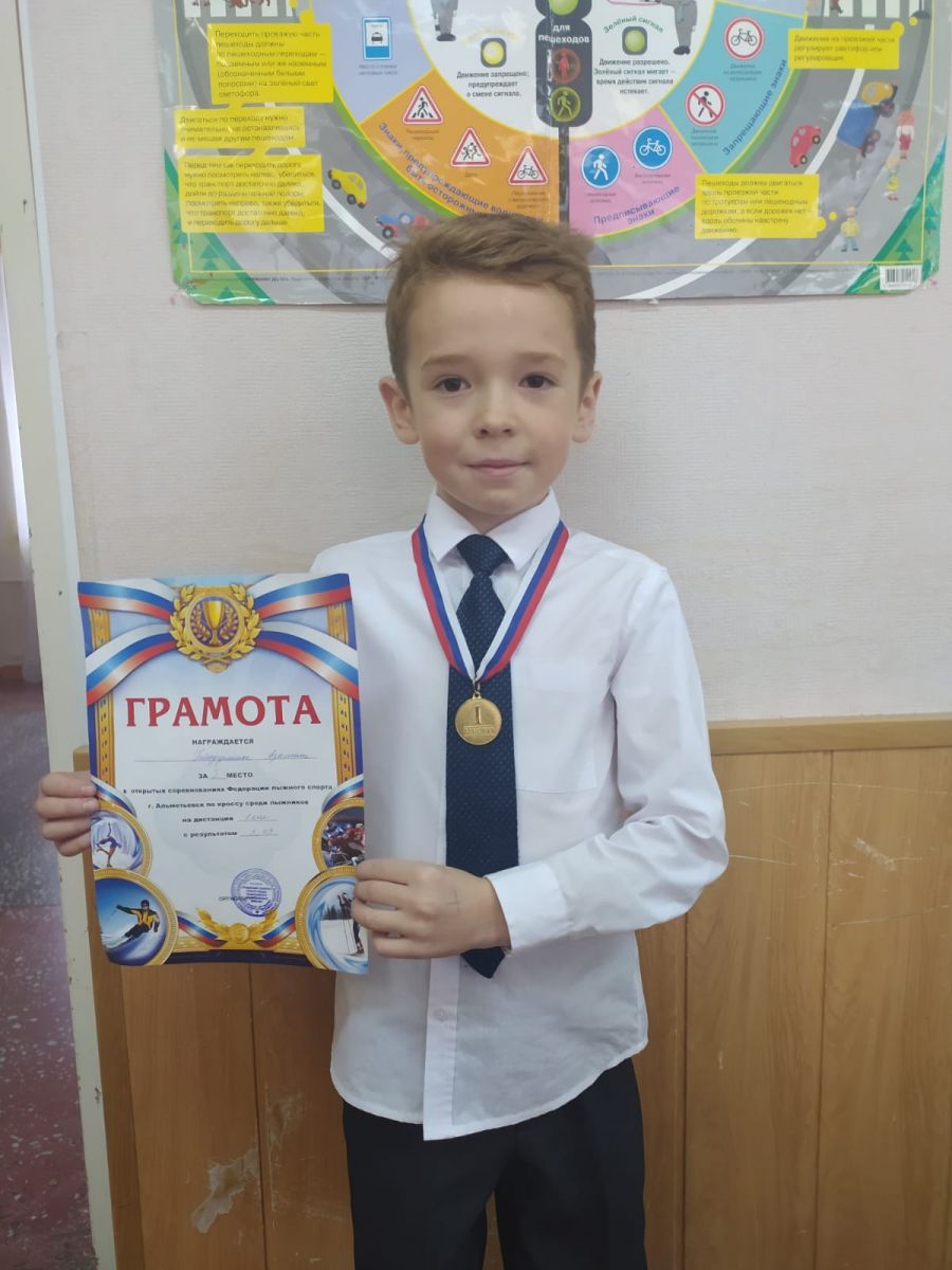 Поздравляем ученика 2б класса Гибадуллина Азамата, занявшего 1 место в открытых соревнованиях Федерации лыжного спорта г.Альметьевск по кроссу среди лыжников. Желаем крепкого здоровья и дальнейших побед!