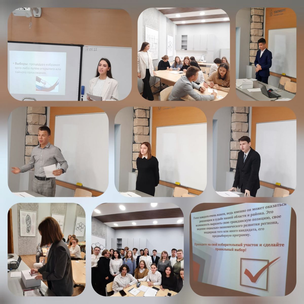17 мая в МБОУ СОШ 1 учитель истории и обществознания Камиля Рафаилевна провела в 10 классе открытый урок по обществознанию на тему: "Выборы в РФ». Цель данного проекта: познакомить учащихся с понятием избирательное право, изучить историю выборов, получить представление о демократических выборах и формах участия граждан в выборах, так как выборы являются важнейшим демократическим институтом, обеспечивающий возможность граждан участвовать в управлении государством через систему голосования. Ребята работали в командах. С каждой команды был выбран депутат, который представил свою предвыборную политическую программу. Ребята смогли почувствовать себя в роли депутатов и избирателей. На открытом уроке приняла участие Салихова Галина Владимировна, секретарь территориальной избирательной комиссии города Альметьевска аппарата Центральной избирательной комиссии Республики Татарстан.
